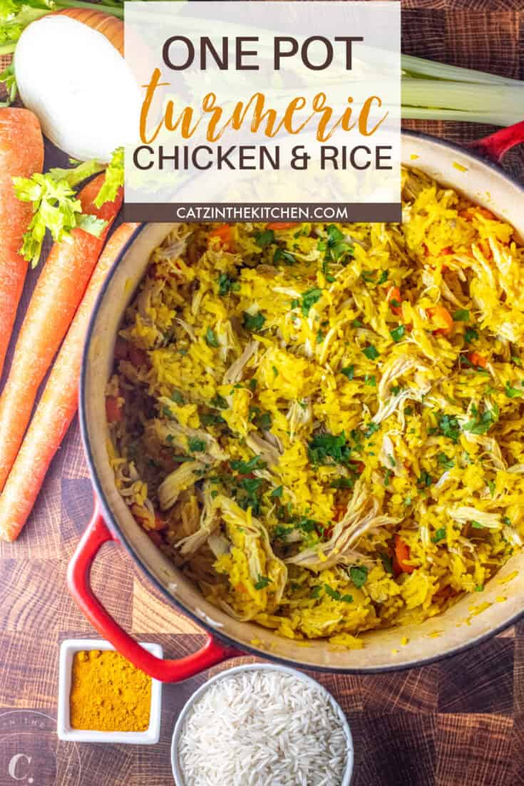 Easy one-pot turmeric chicken and rice: gluten-free, family-friendly dinner with warm spices, tender chicken & fluffy rice—all in one pan!